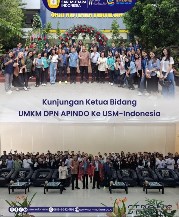 Medan — USM-Indonesia | Universitas Sari Mutiara Indonesia menerima kunjungan Ketua Bidang UMKM DPN APINDO, bertempat di Ign. Washington Purba Hall, Rabu (10/12/2025). Kegiatan ini dihadiri oleh Ketua Yayasan Sari Mutiara Medan Dr. Parlindungan Purba, S.H, M.M; Wakil Rektor III USM-Indonesia Ns. Johansen Hutajulu, AP, S.Kep, M.Kep, Ph.D dan mahasiswa USM-Indonesia dari berbagai program studi. […]