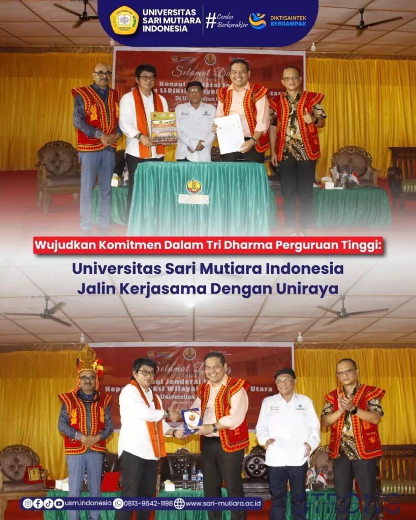 Ketua Yayasan Sari Mutiara Medan Dr. Parlindungan Purba, SH, MM dalam keterangannya menyampaikan bahwa penandatanganan kerjasama ini merupakan wujud nyata komitmen serta wadah bagi USM-Indonesia dalam memperluas jaringan kerjasama strategis di bidang pendidikan, penelitian, dan pengabdian kepada masyarakat guna menuju perguruan tinggi yang unggul dan berdampak.